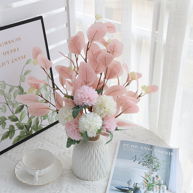 Champagne white 1 bunch with white vase Double blue 1 bunch with white vase White purple 1 bunch with white vase Dark blue 1 bunch White blue 1 bunch with white vase