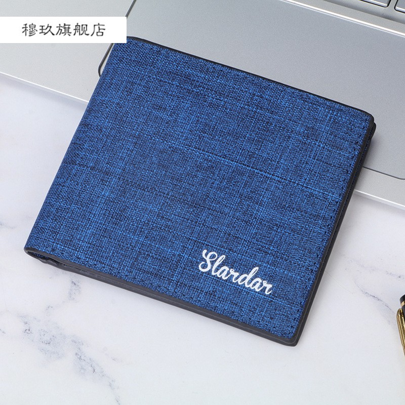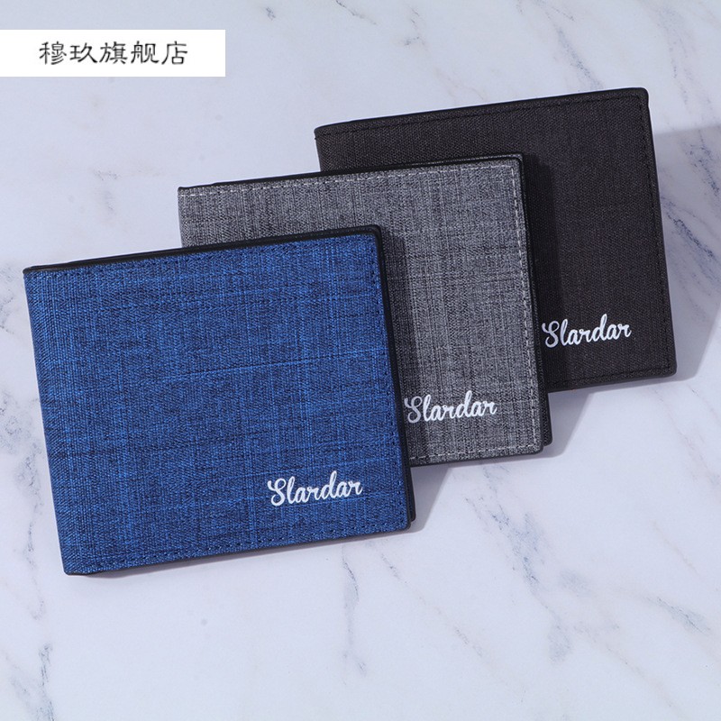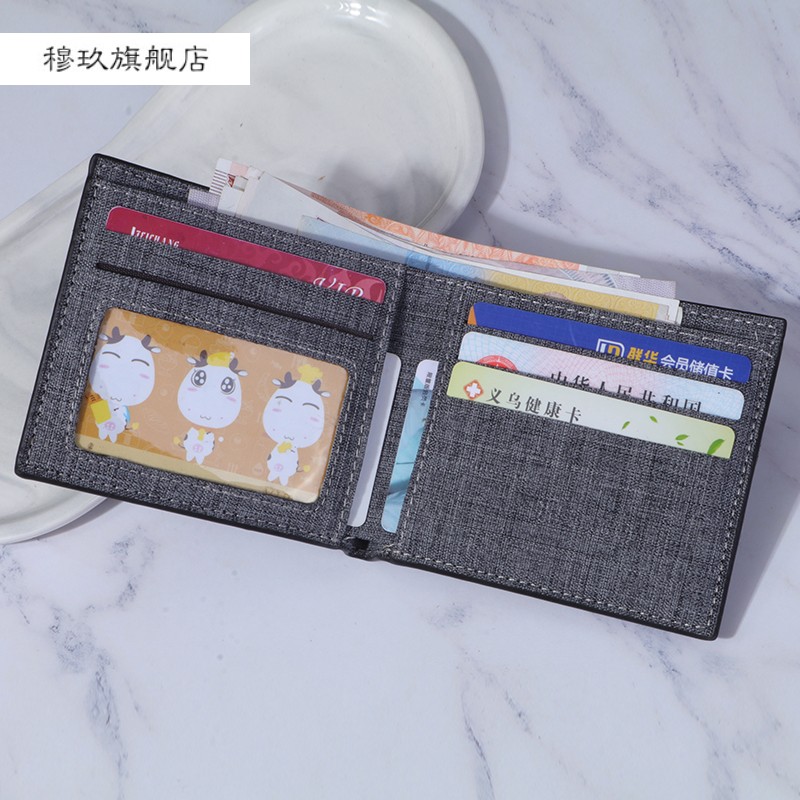 Men's wallet Men's short section 2021 new canvas boomer minimalist youth high school raw ultra-thin personality small leather clip