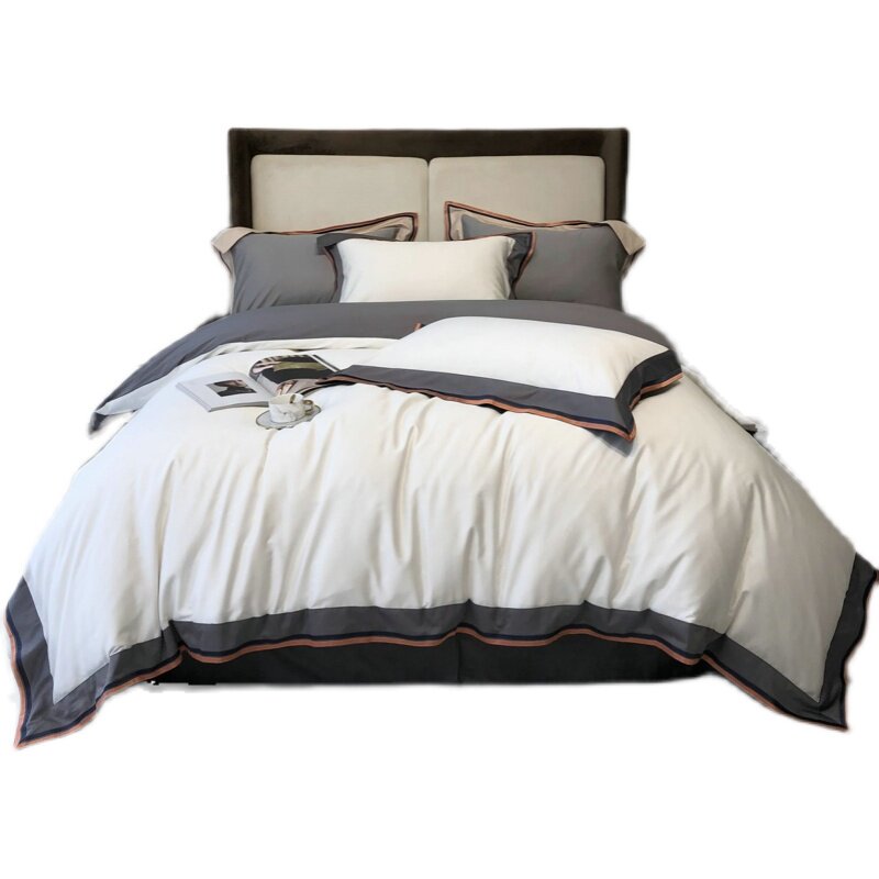 XERST Nordic wind minimalist pure cotton four pieces 120 long suede cotton full cotton embroidered bed linen bed bedding