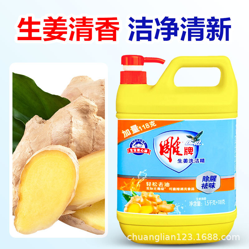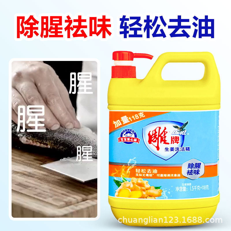Carved brand 1 5kg ginger dishwashing liquid large bottle of tableware fruits and vegetables to remove fishy and deodorant easy to rinse without residue wholesale