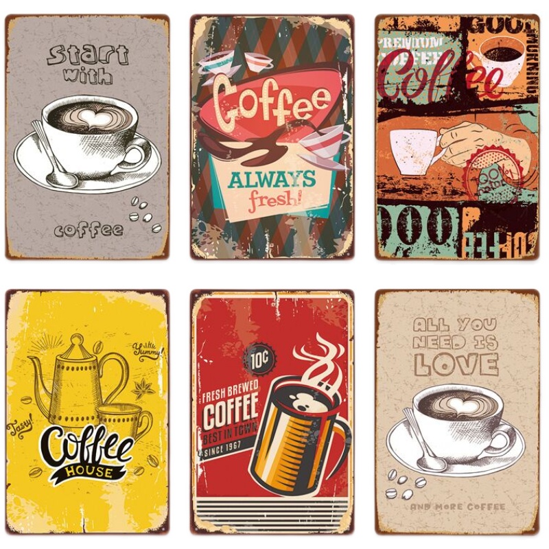 New coffee shop retro poster sheet Tin painting Café background wall decoration No-frame hanging painting