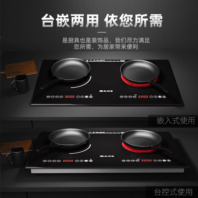 Champentang Domestic embedded double-head induction cooktop High-power Exploits Table induction cooktop Black Crystal Furnace Combined Bioral Gas Stove