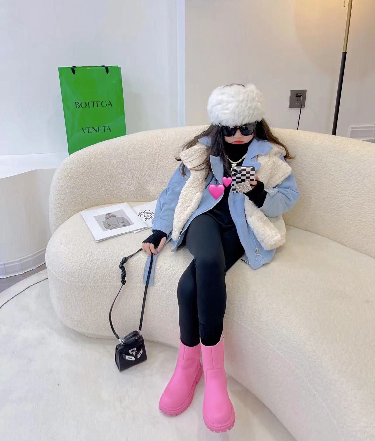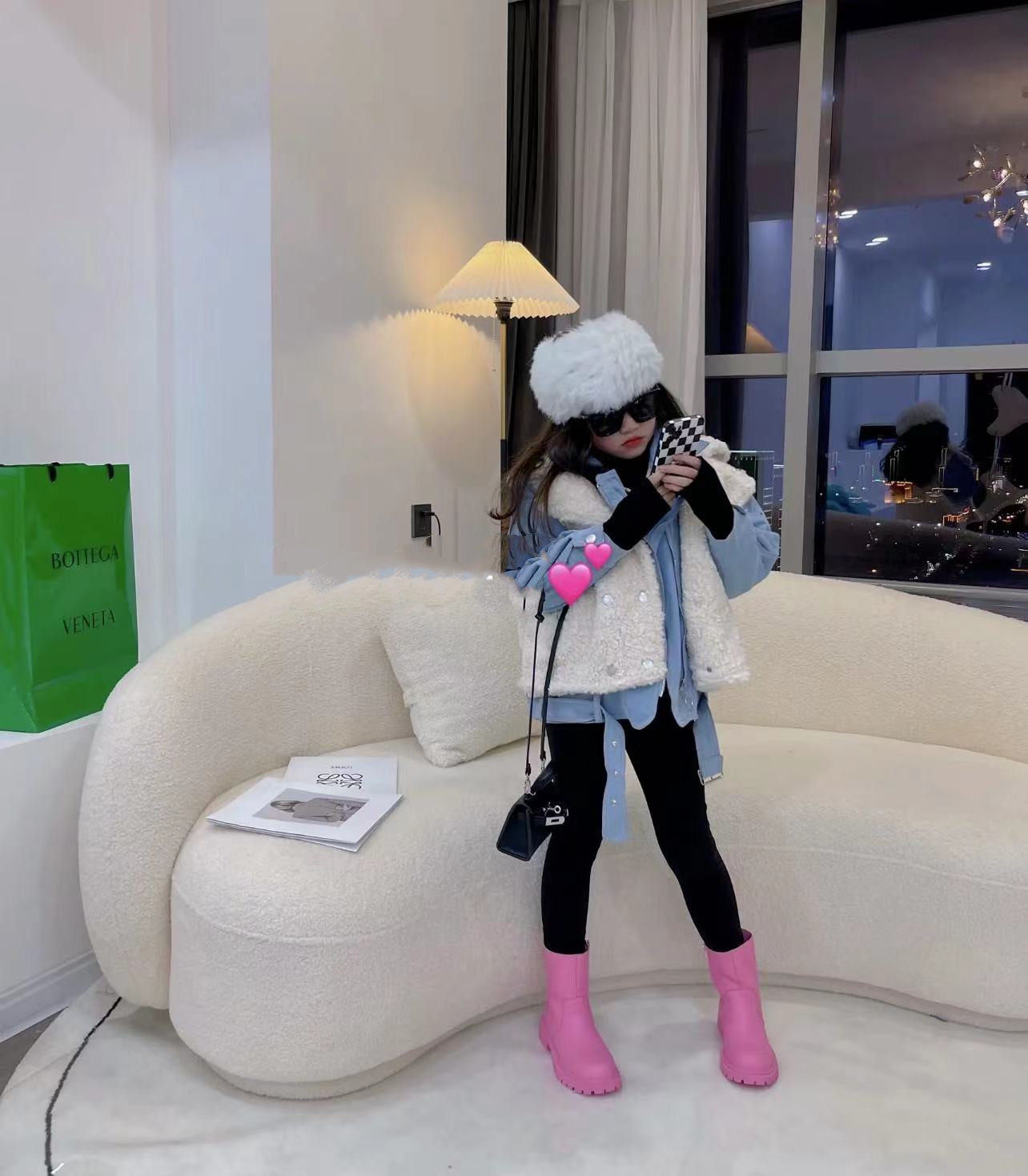 Broken code spike~~ Girls imitation fur coat Korean version short denim stitching fake two lamb wool plus cotton tide