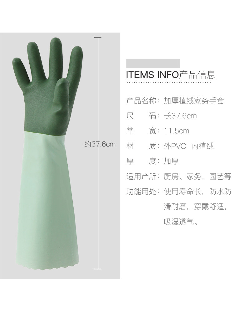 2 double-pack-light luxury Green (flocking one housework gloves)
