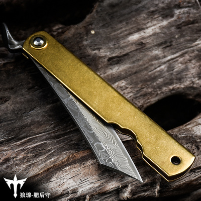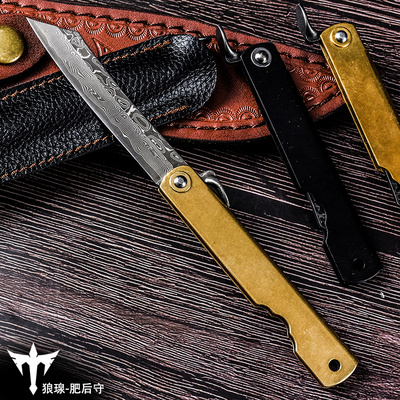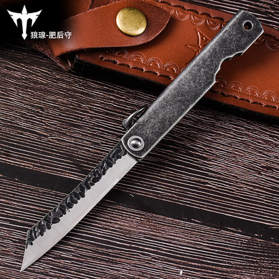 Wolf Damascus steel fertilizer back guard outdoor pocket knife portable folding knife sharp knife self-defense forging knife