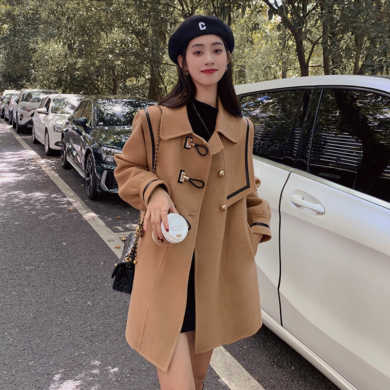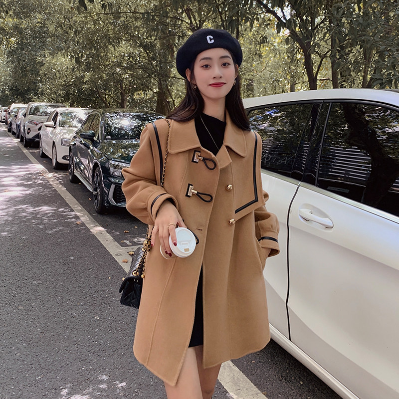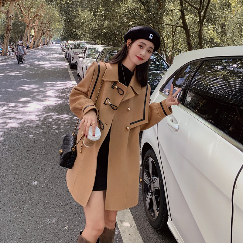 Fei'er double-sided cashmere coat women's autumn and winter 2021 new mid-length version Korean temperament high-end woolen coat