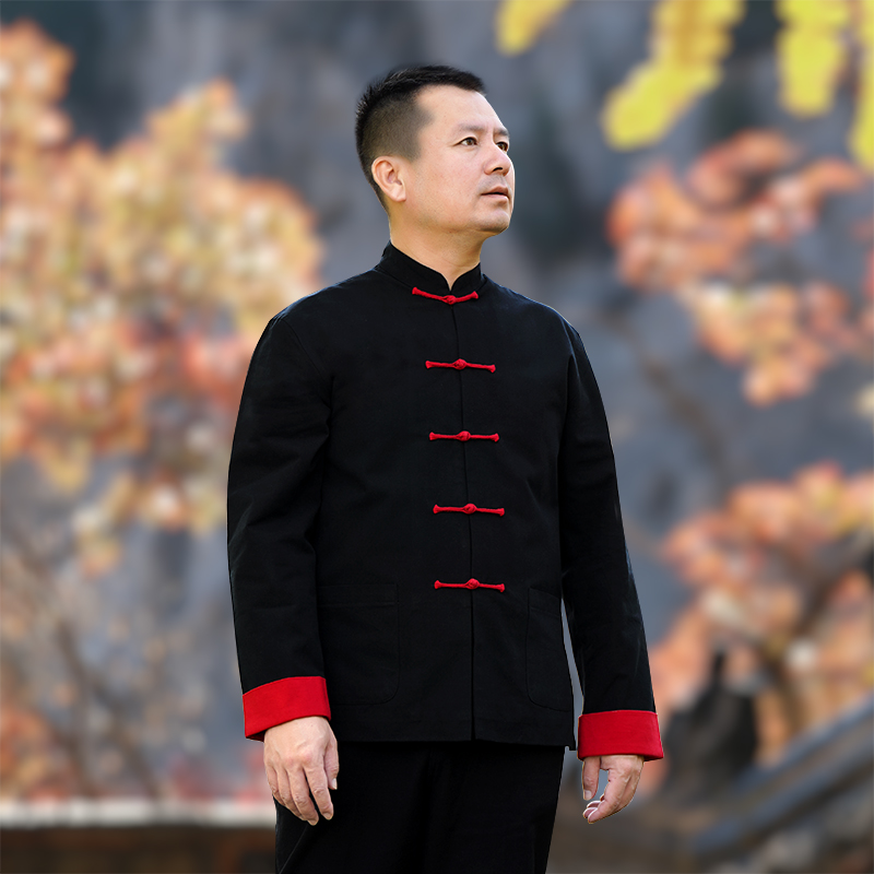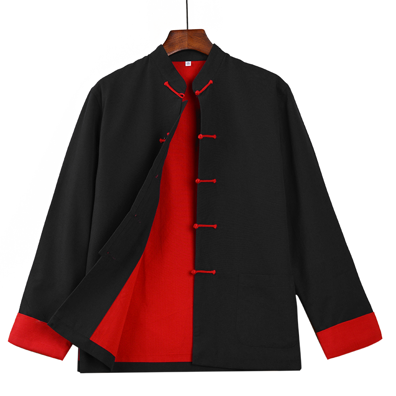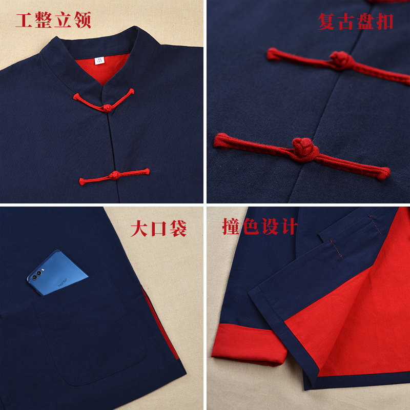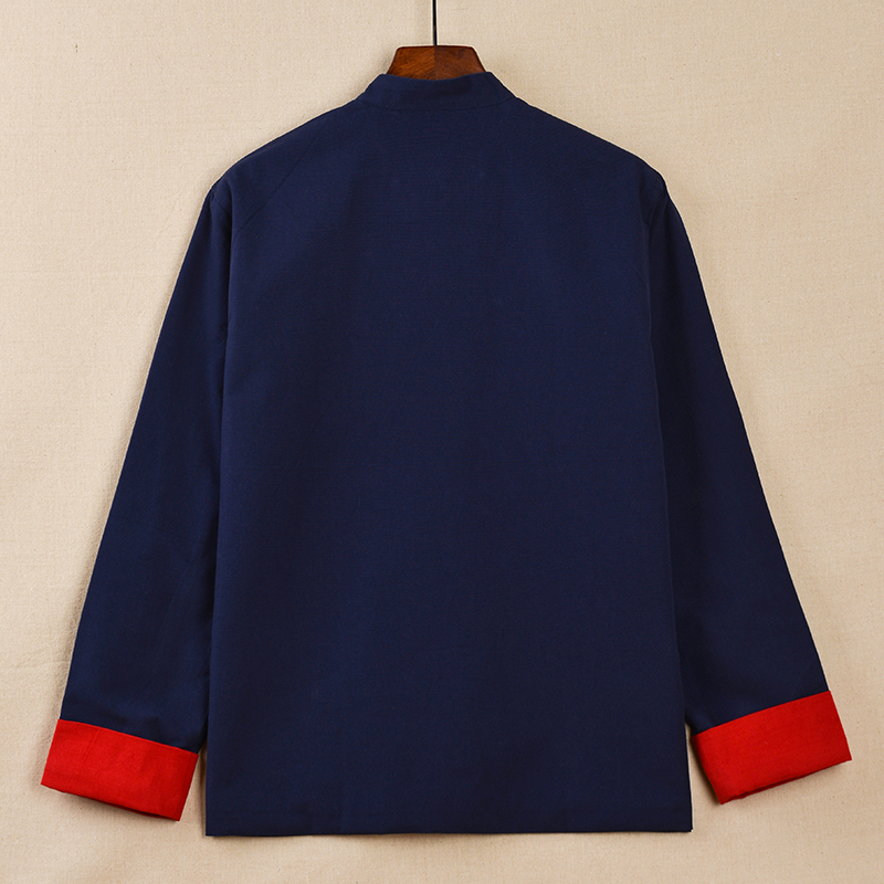 Pure cotton coarse cloth Tang suit men's autumn retro Chinese style buckle long-sleeved top Chinese style middle-aged and elderly Hanfu father's clothing