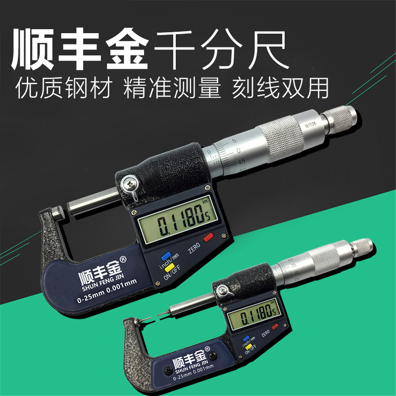Shunfeng gold high-precision digital display outer diameter micrometer electronic spiral micrometer precision 0001 industrial grade-Taobao