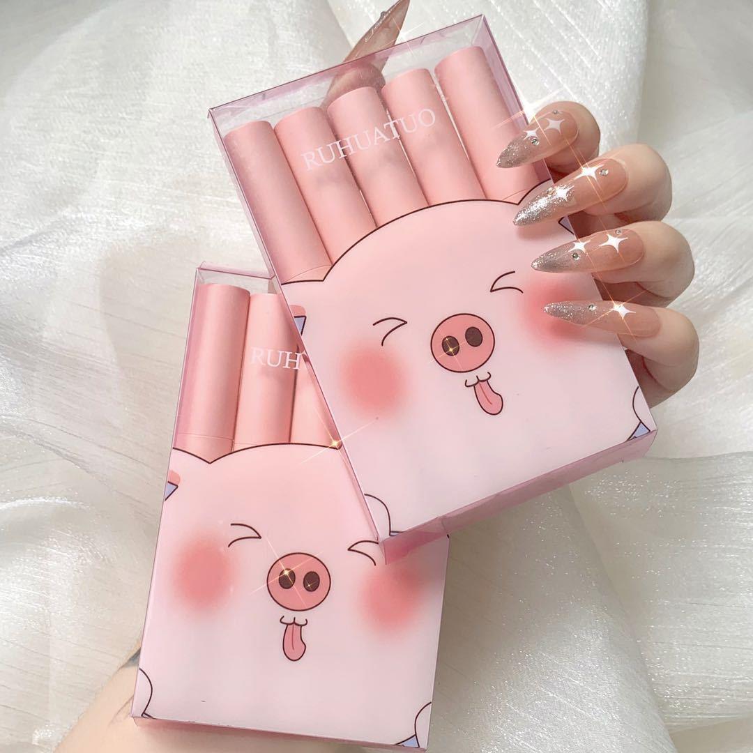 Cute pig lip glaze set lasting moisturizing and not fading RUHUATUO Li Ying Beauty Official Flagship Store