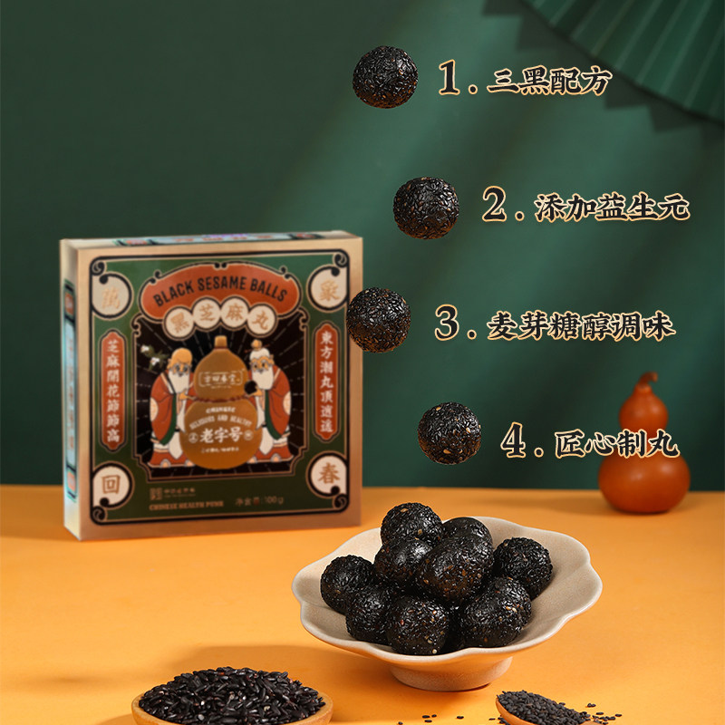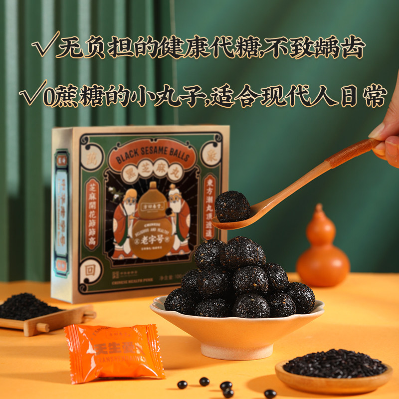 Square Back Spring Church Black Sesame Balls National Tide Version 100g Yisheng Yuan Artisanal Rice Cake Black Sesame Balls Balls snacks