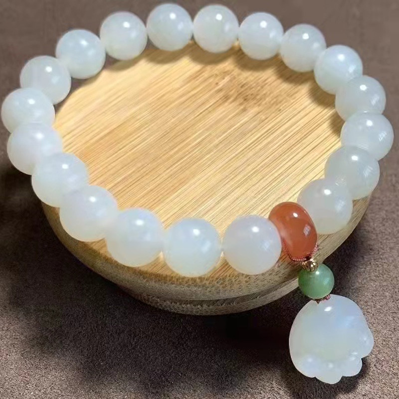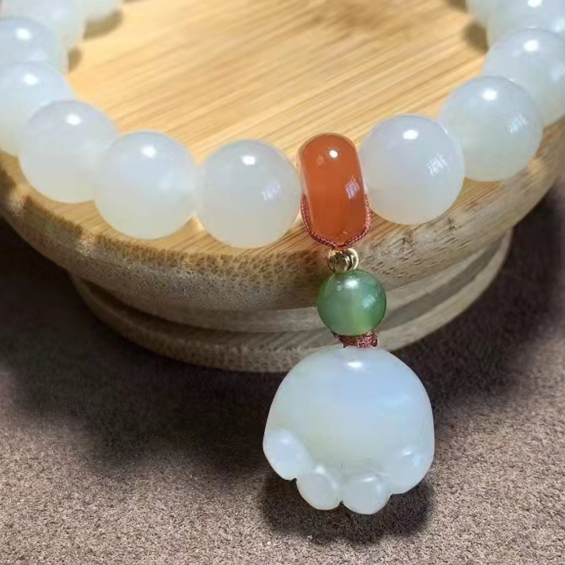 Tan Yu Professional Live White Jade with cat claw bracelet bracelet jade fine grain full and round