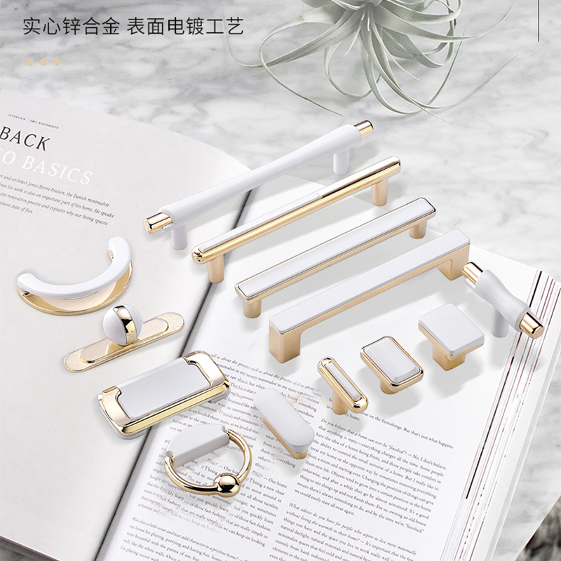 Modern minimalist white wardrobe handle golden handle black single hole Nordic overall cupboard drawer cabinet door handle light and luxurious