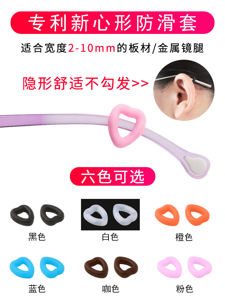 Heart-shaped glasses non-slip cover Silicone Ear Hook ear rear ear tugging Anti-fall device Eye rack leg accessories Leg Accessories