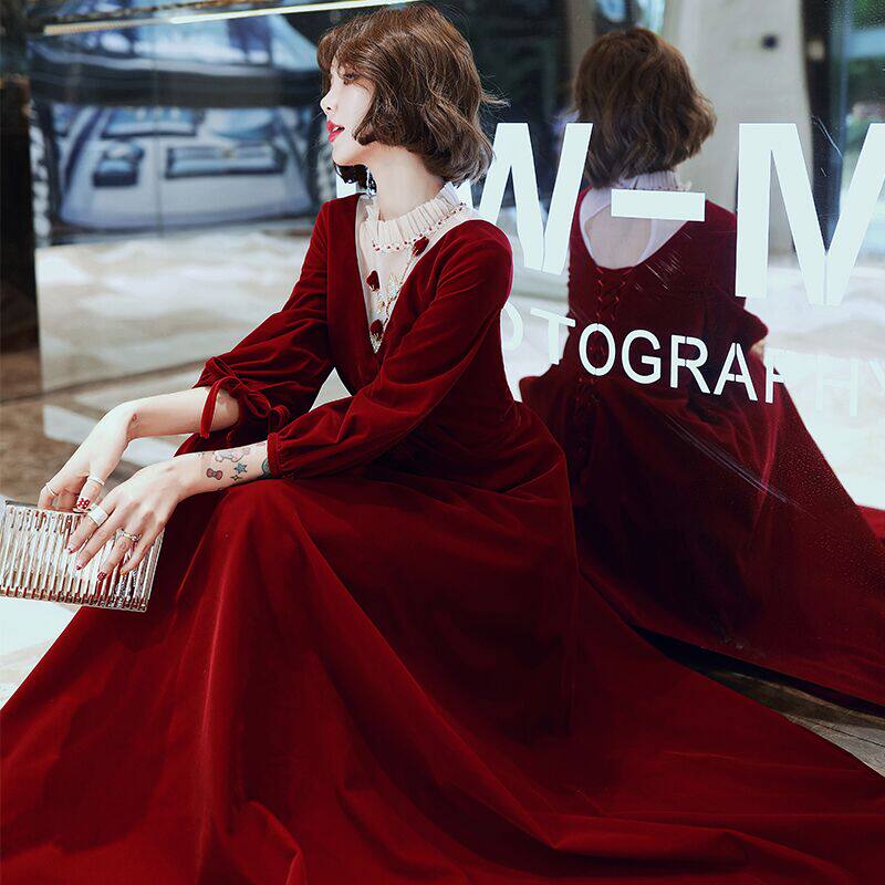 Large size toast dress bride wedding engagement dress fat mm200 catties back door high waist cover belly thin female spring