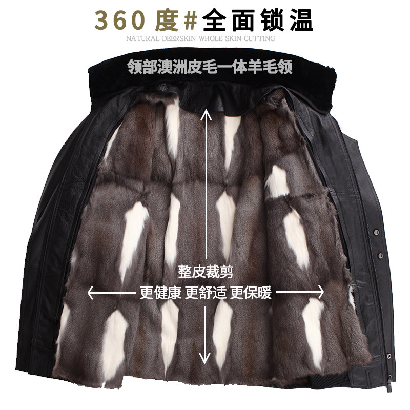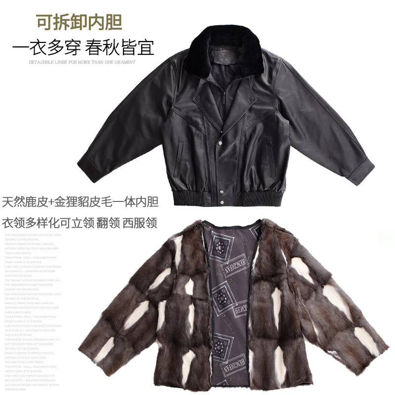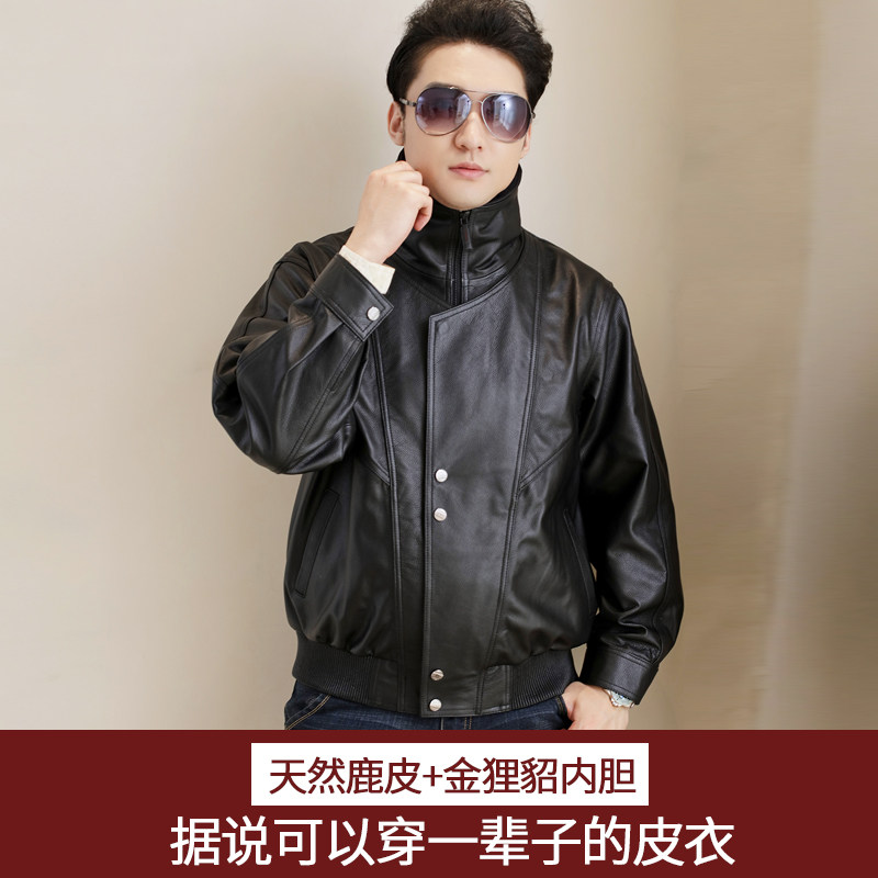 Headliner Deer Skin Leather Clothing Male Dermis Air Force Pilot Leather Jacket Gold Ferret Fur Integrated Liner Glint Thickened