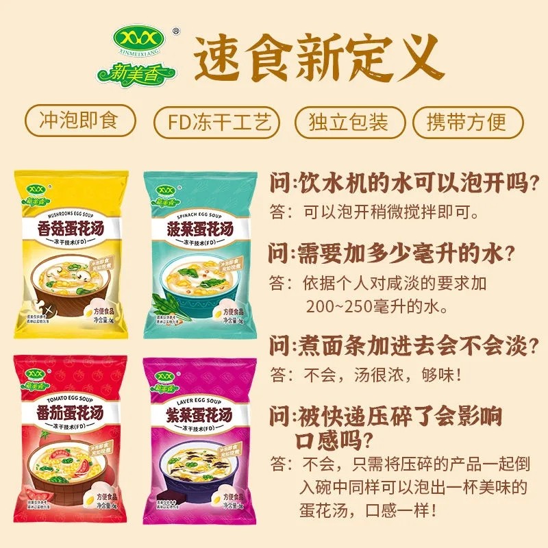 Xinmeixiang instant soup instant egg flower soup tomato tomato egg soup instant spinach seaweed soup fresh vegetables mushroom soup