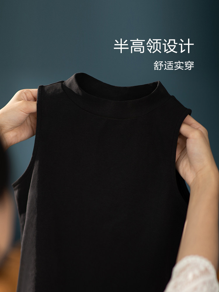 Finstina Spring and Autumn Half High Collar Sleeveless Vest Bottom Inner Wearable Outer Slim Thin Sexy Sleeve Top
