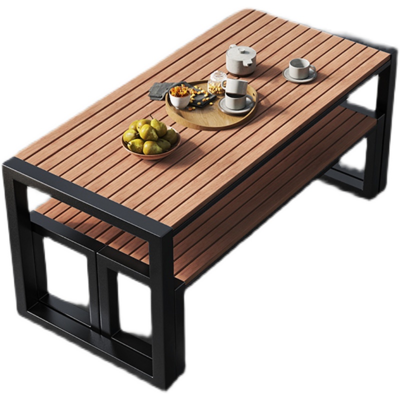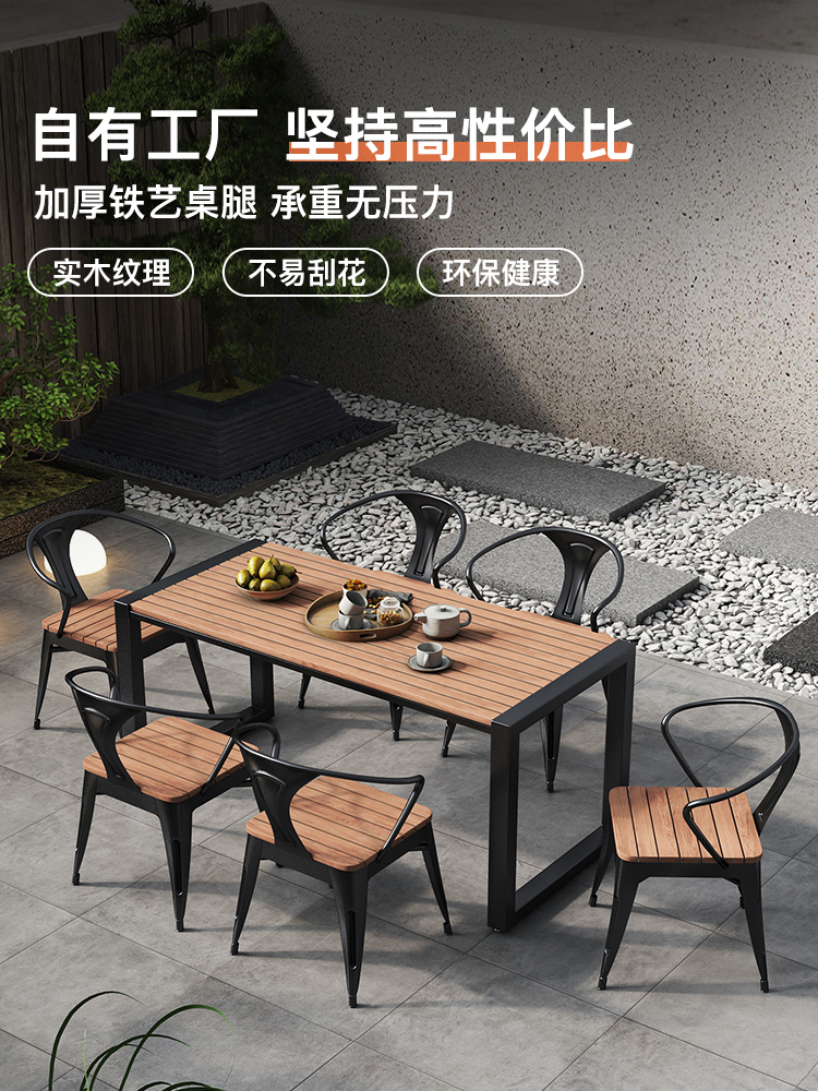 Outdoor balcony table and chair combination leisure outdoor courtyard wrought iron small coffee table antiseptic wood terrace coffee garden table and chair