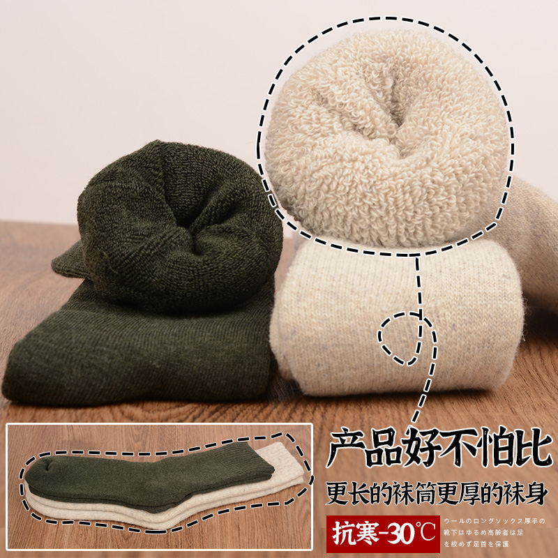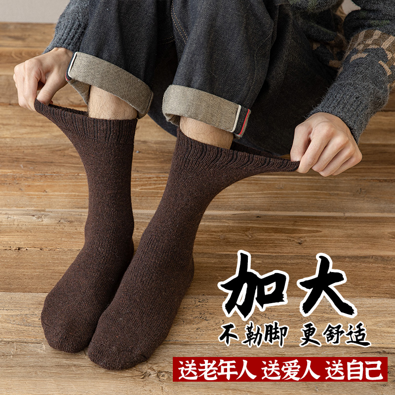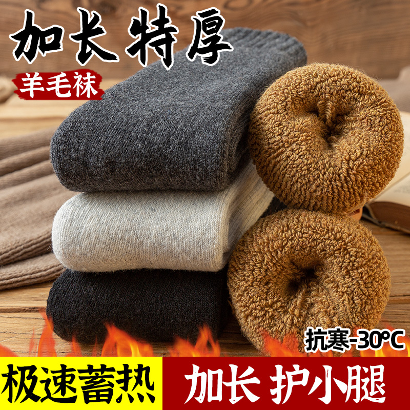 Lengthened thickened wool socks male winter high cylinder ultra-thick female northeast plus suede socks large size winter seniors Songkou cotton socks-Taobao