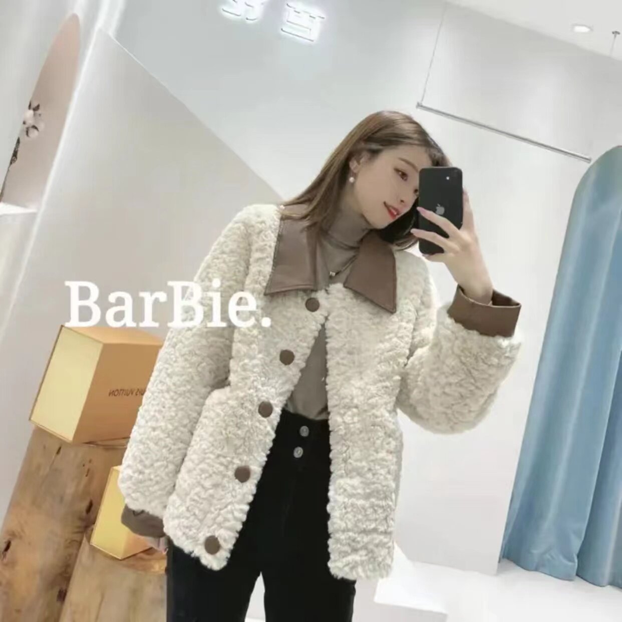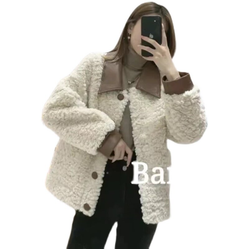 High-end design sense, elegant and fashionable, small fragrance style, leather collar, stitched fur coat, women's 2021 winter new cardigan - Taobao