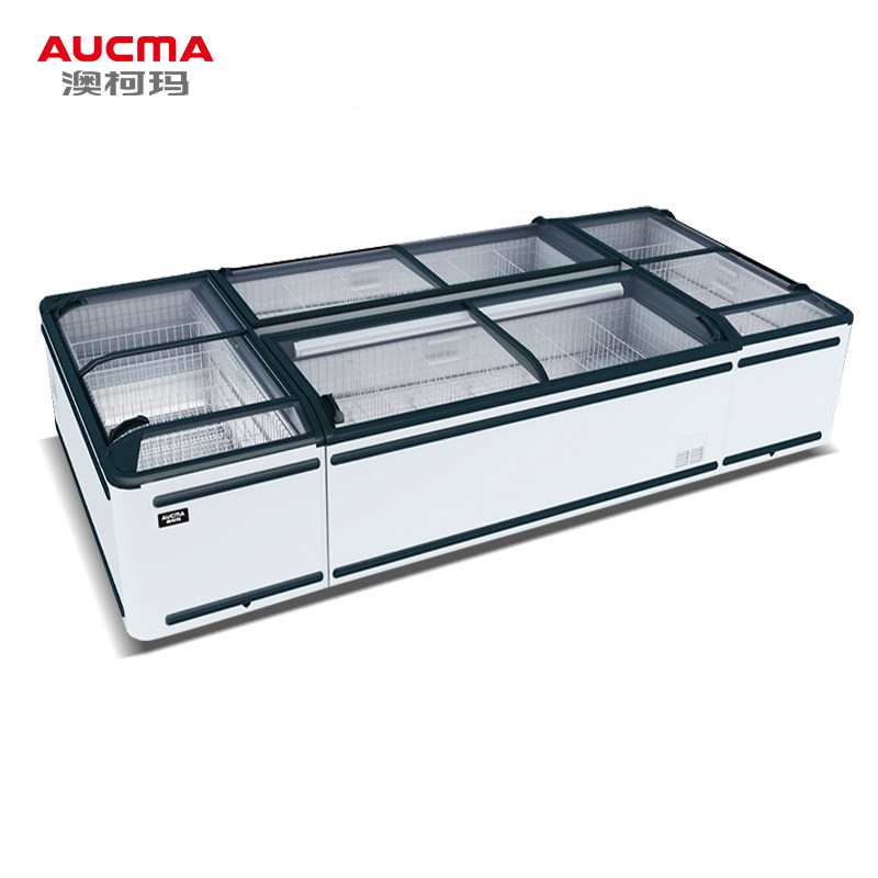 Auskoma Commercial Frost-free Ice Freezer Refrigerated Horizontal Display Case Large Capacity Combined Island Cabinet Supermarket Ice-cream Cabinet