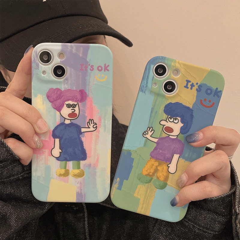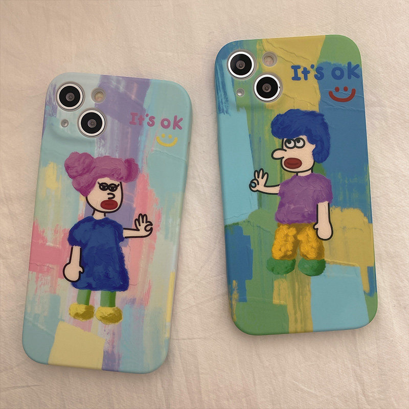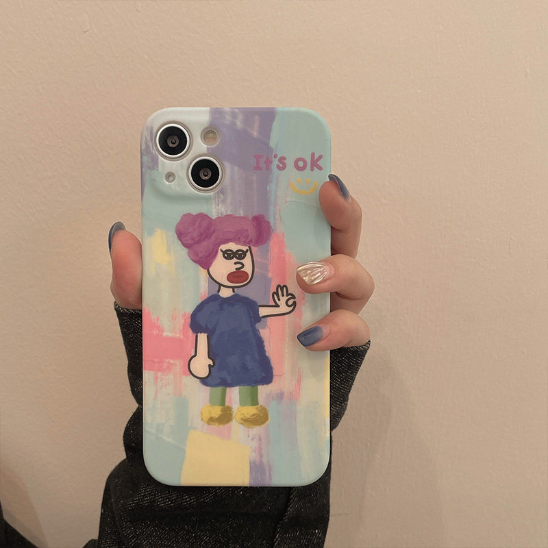 Fun adorable oil painting Cartoon applies iPhone11 Apple 12promax mobile phone protection shell 13 x xs xr female xsmax anti-fall 7 8plus silicon