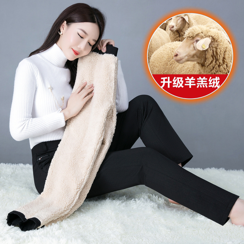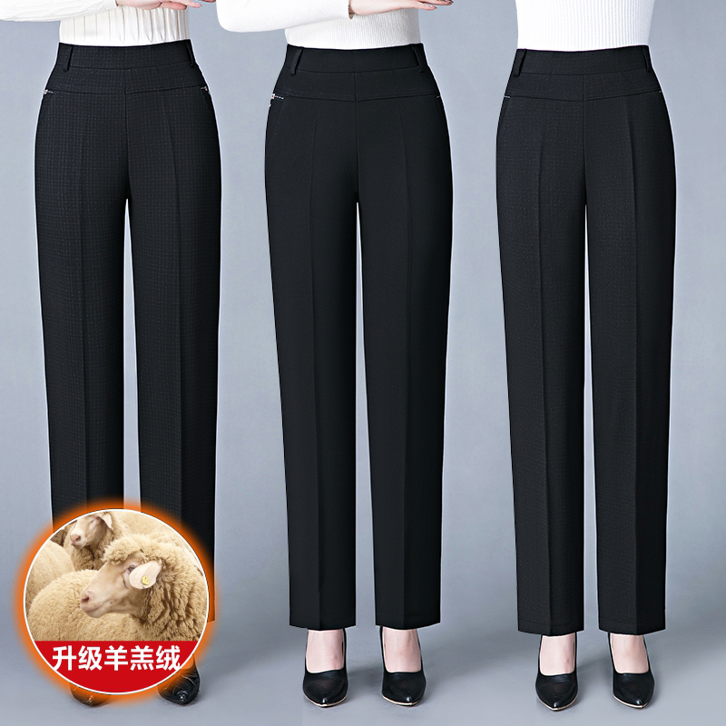 Middle Aged Mom Pants Children Autumn Winter Long Pants Plus Suede High Waist Straight Drum Cashmere Winter New Casual Cotton Pants