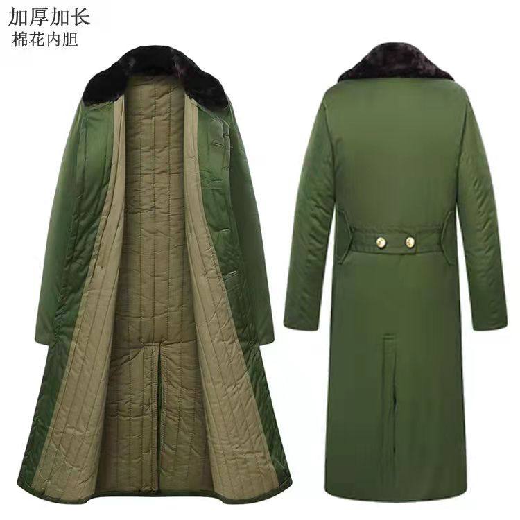 Military Cotton Great Coat Winter Thicken men and women Long version refrigerated Kullao security northeast Green coat wash Anti-cold working clothes quilted jacket