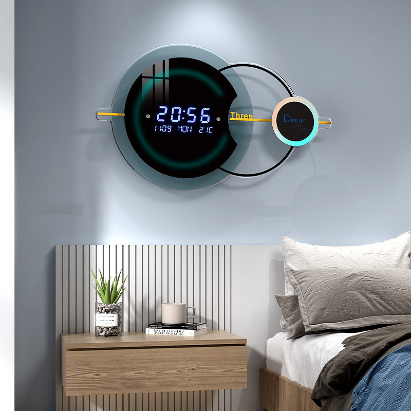 Brief FASHION HOME DIGITAL ELECTRONIC BELL HANGING WALL CREATIVE DECORATION INTELLIGENT WATCH AND WATCH HANGING CLOCK LIVING ROOM LIGHT AND LUXURIOUS MODERN