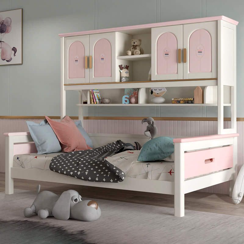 Solid wood wardrobe bed one girl pink princess bed simple modern small apartment bookshelf bed children's suite furniture