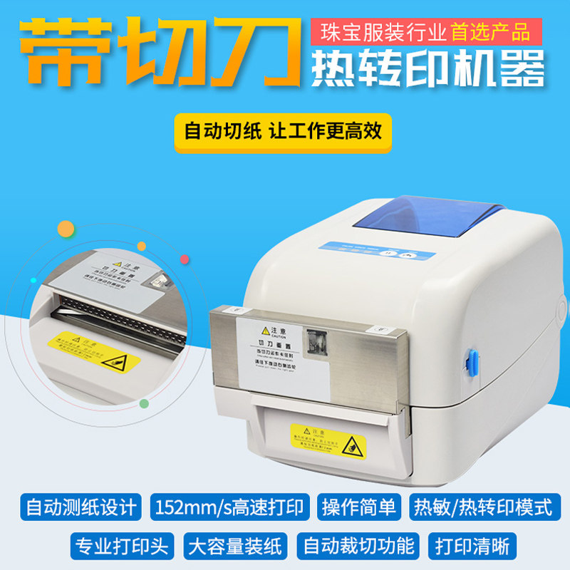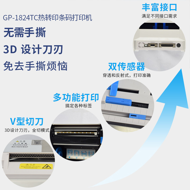 Jiabo GP-1824TC comes with cutter bar code printer automatic paper cutting thermal transfer sticker label clothing tag washing water mark scenic spot ticket jewelry label certificate price tag