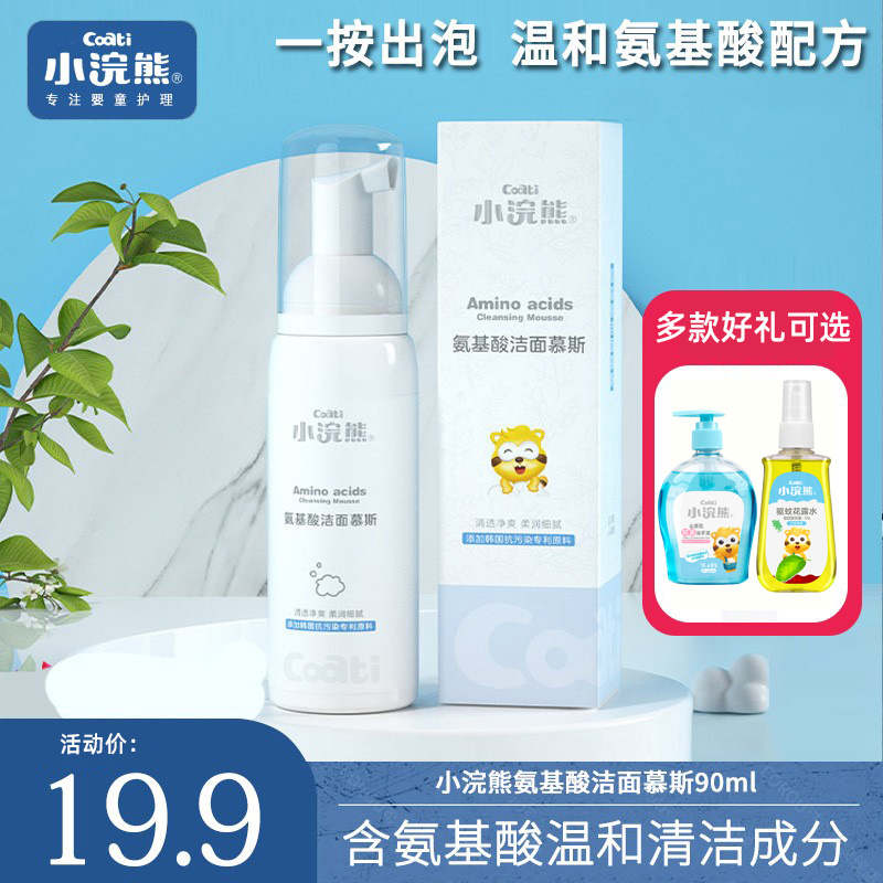 Little raccoon children's facial cleanser amino acid cleansing mousse foam 90ml children students male and female baby cleanser