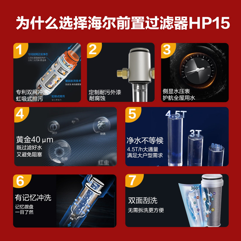 Haier Front Filter Home Full House Waterway Protector Tap Water Filter Backwash Water Purifier HP15