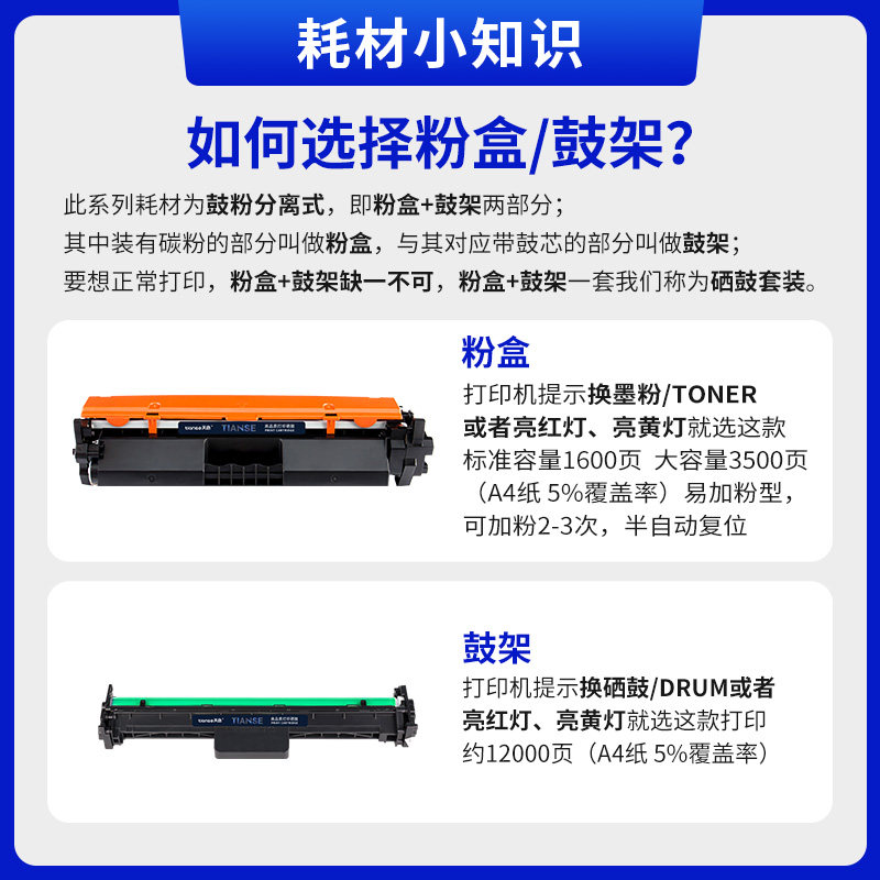 (1500 pages) Standard version powder box with chip (Buy 5 send 1) (3500 pages) high-definition version large capacity powder case with chip (Buy 5 send 1) (12000 pages) Drum stand