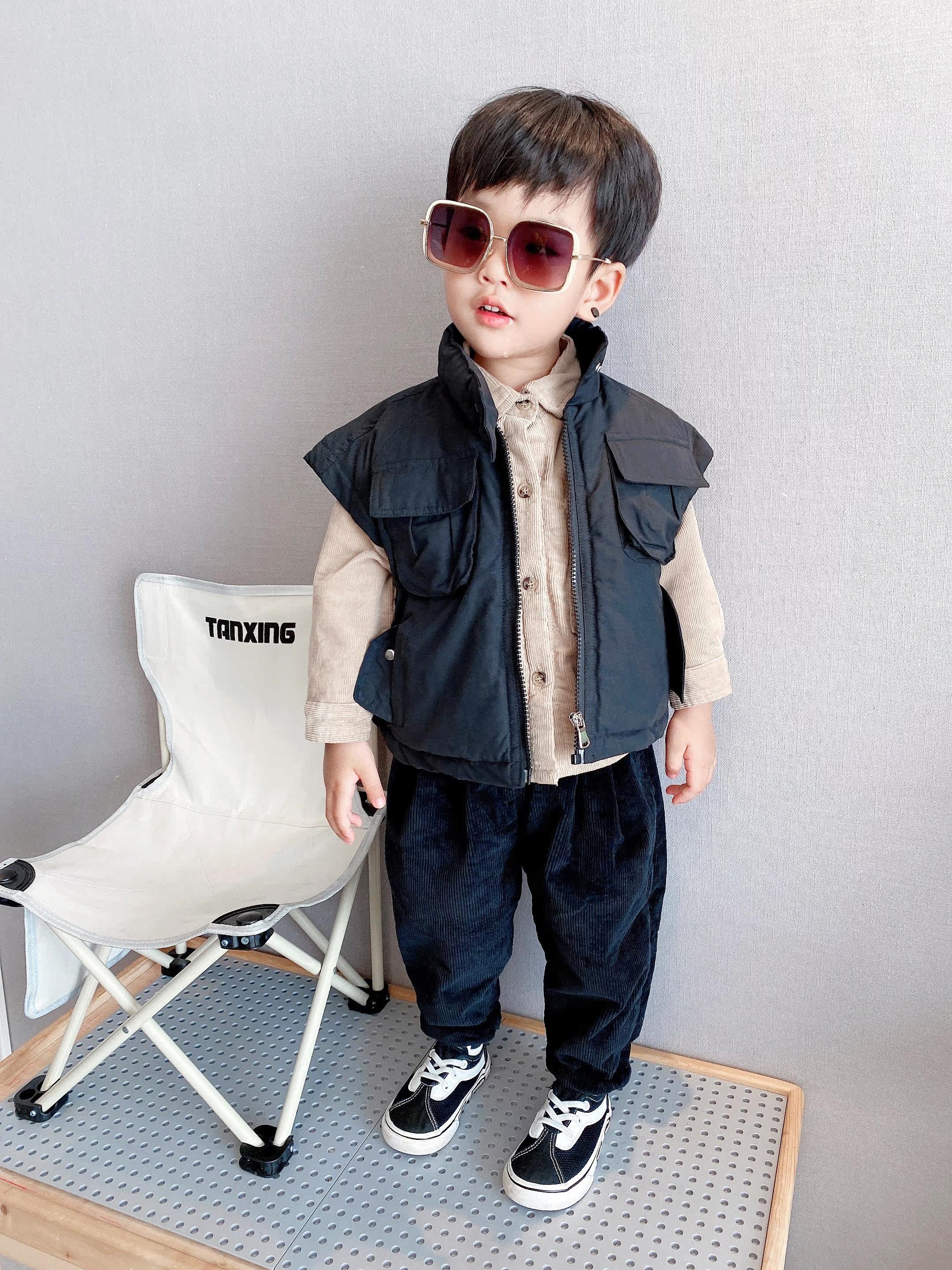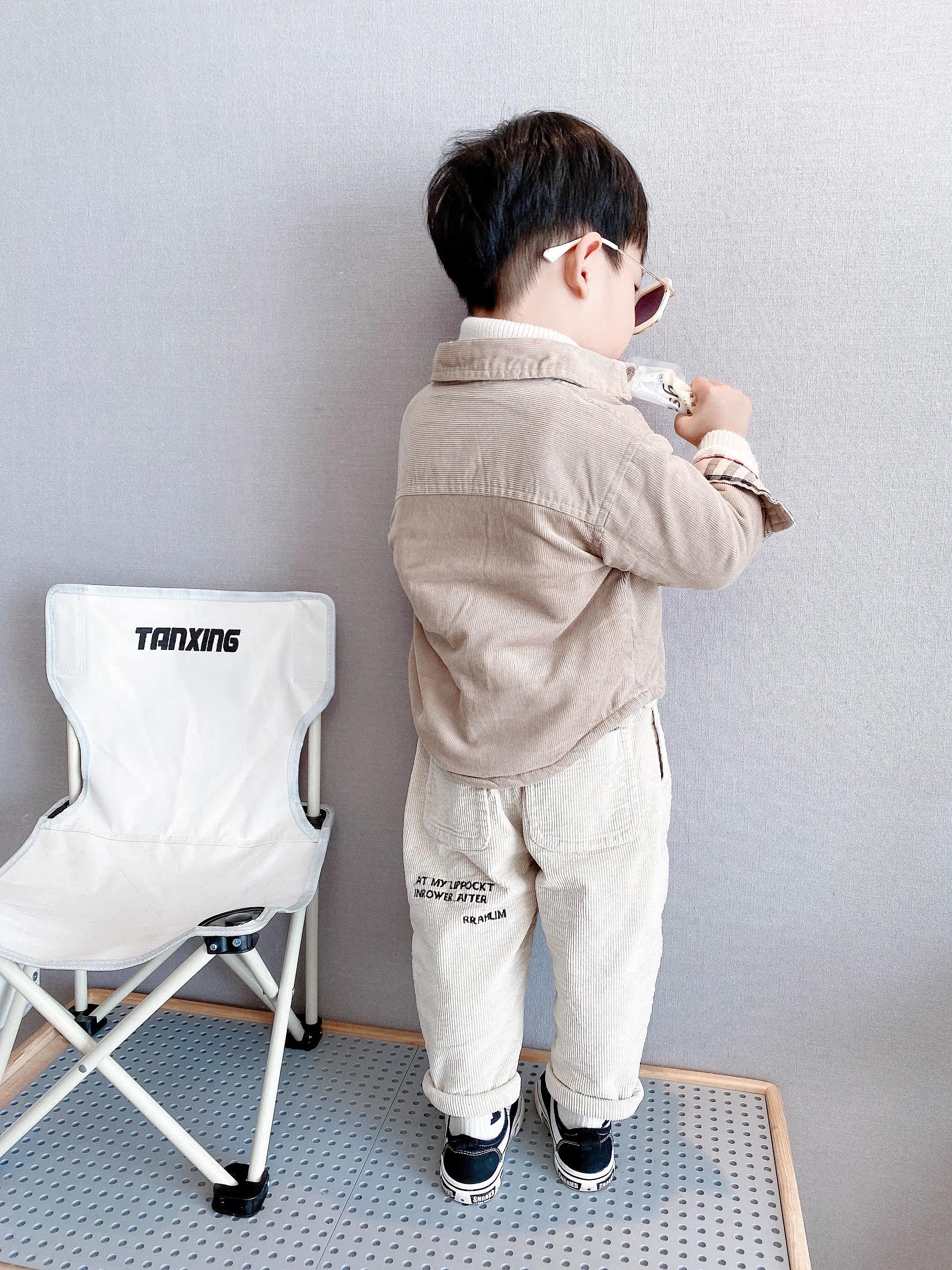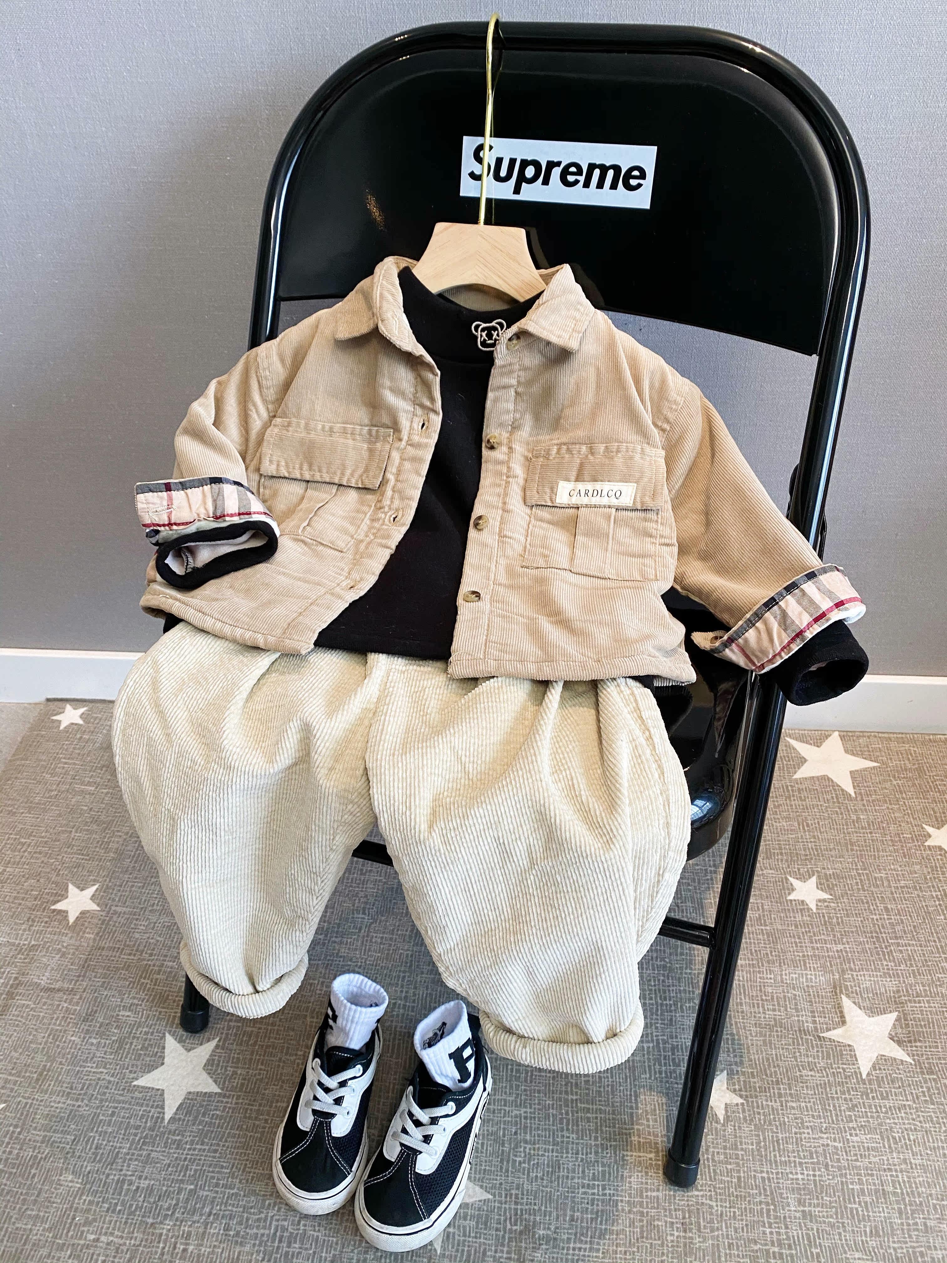(Fleece Shirt) Children's autumn and winter fleece warm khaki lapel shirt top