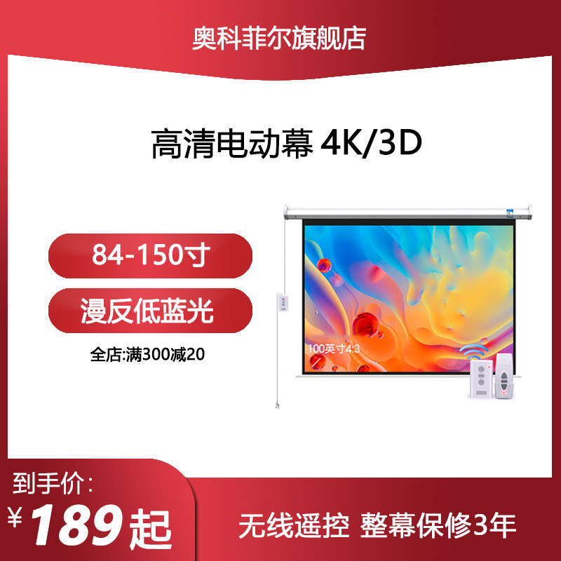 (Okofir) Electric projection curtain 100 inch 120 inch 150 inch 150 inch film HD Home projector Projection Cloth Wall-mounted Projector Screen Automatic Lifting White Curtain Electric Curtain