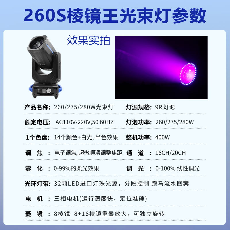 260W Beam Light Prism King Color Light Circle Ecstasy bar Clear bar Slow Rocking Bar Swivel Pattern Light Stage Spotlight