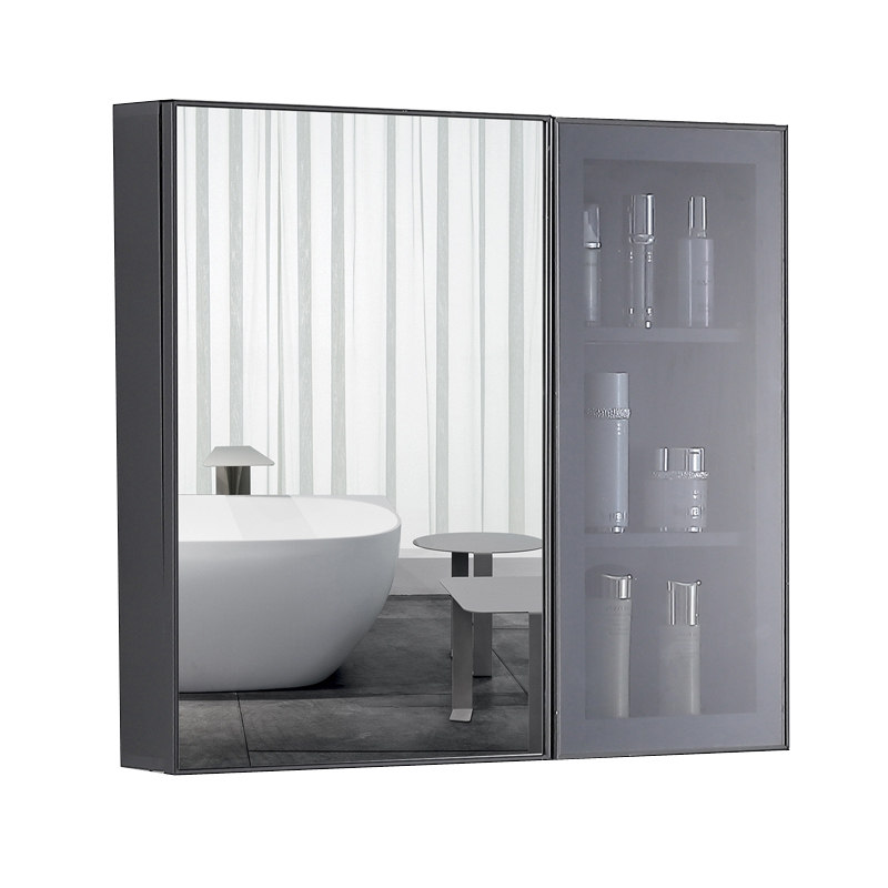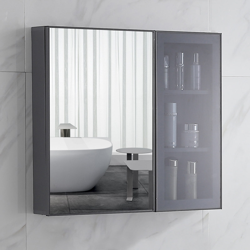 New light luxury space aluminum mirror cabinet Bathroom mirror cabinet mounted wall mirror cabinet