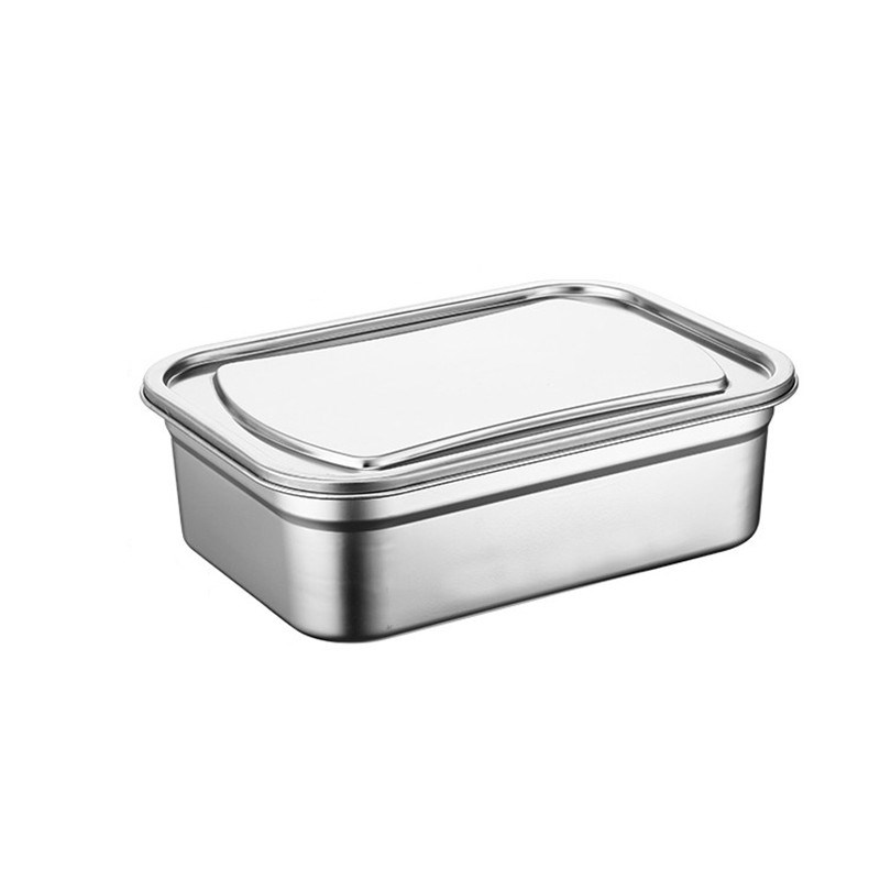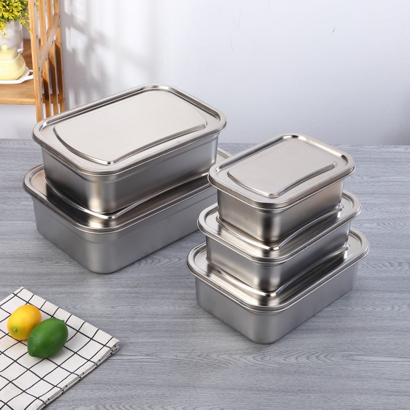 Stainless steel refreshing box containing box 304 food box dining basin reserved vegetable basin with lid fridge rectangular lunch box
