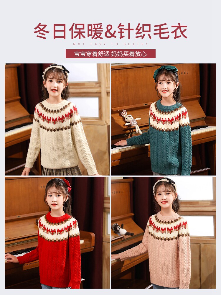 Girls' sweater autumn winter 2022 new Winter Korean version Children's thickened knitted sweatshirt CUHK Scout blouses