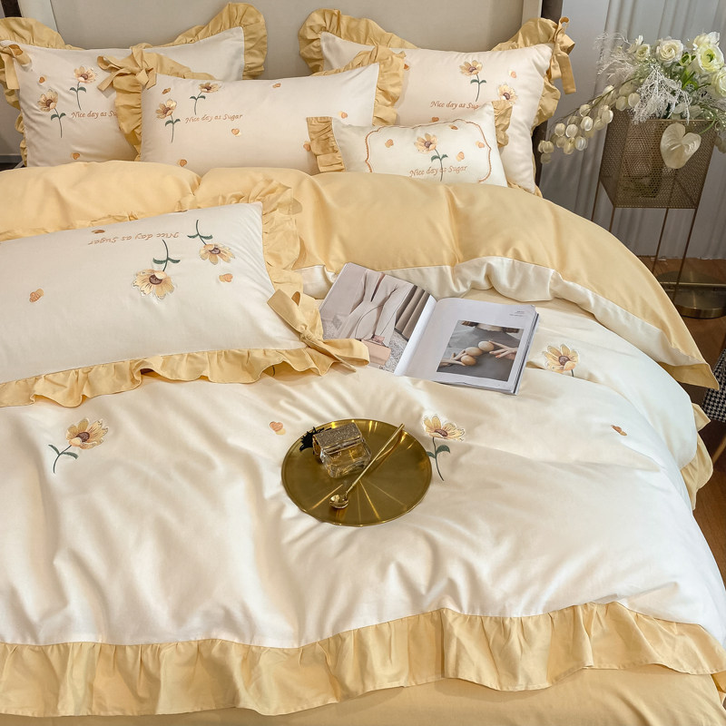 XERST Public Main Wind Teenage Girl Hearts Four Pieces Of Pure Cotton 100 Full Cotton Grinding Bed Linen Bed with Autumn Winter Bed supplies