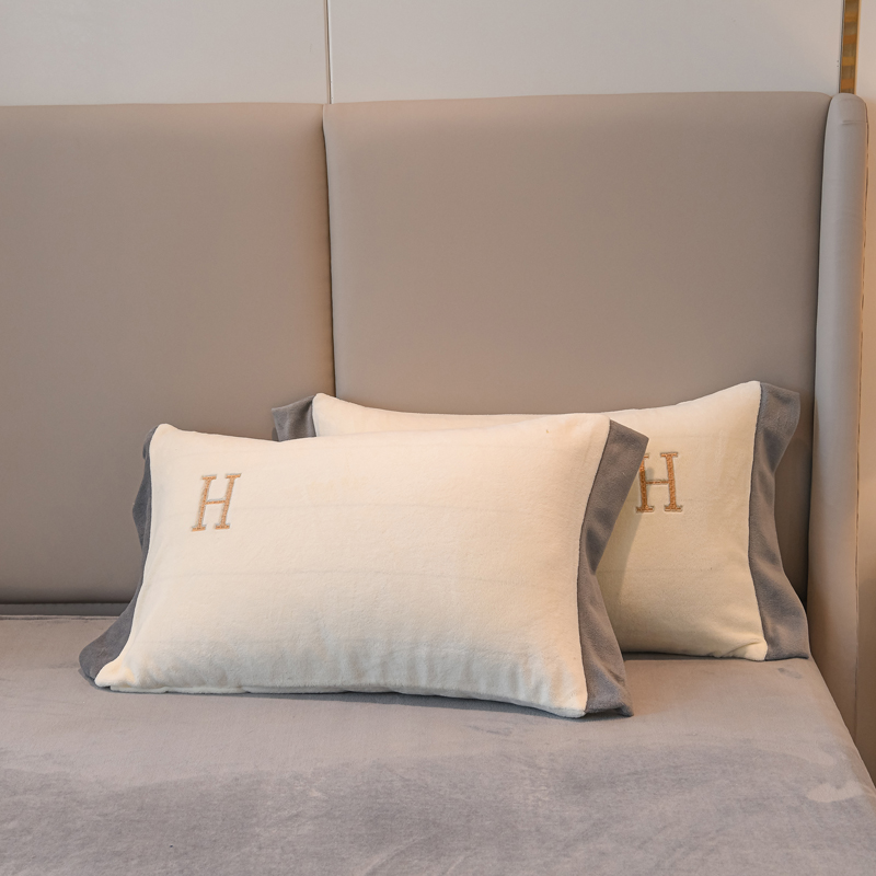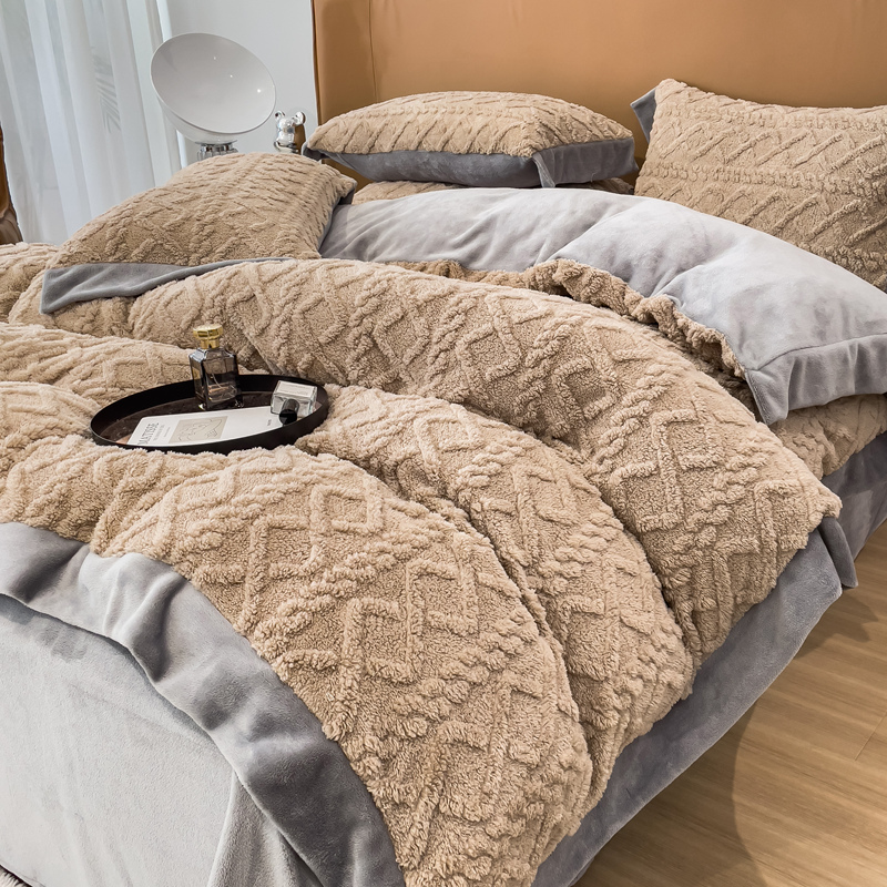 Four pieces of light luxury cotton beds in winter plus linen in flannel coral bed three pieces