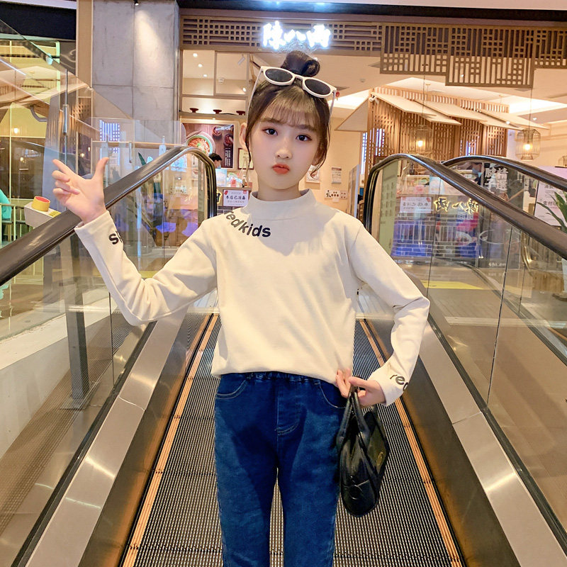 Girl Duvet Beat Undershirt 2021 Autumn Winter New CUHK Child Suit Plus Suede Thick and Half High Neckline Hitch