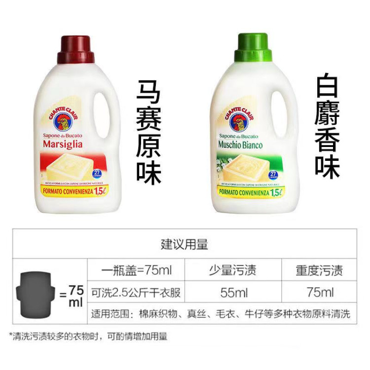 Italy imported big rooster head laundry liquid powerful decontamination color protection hand guard white moss flower fragrance Marseille laundry soap