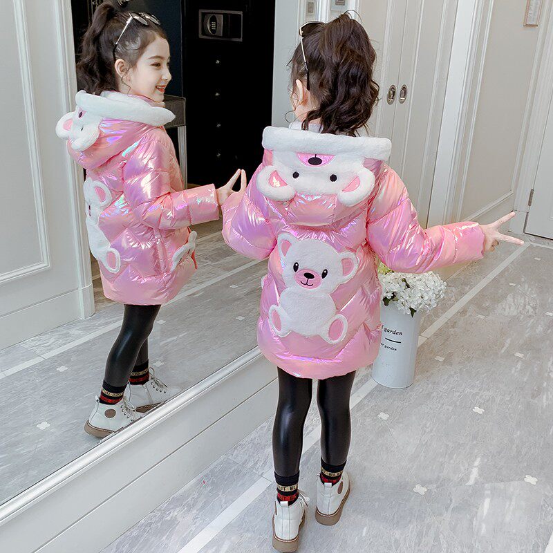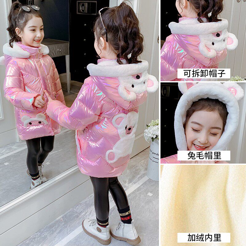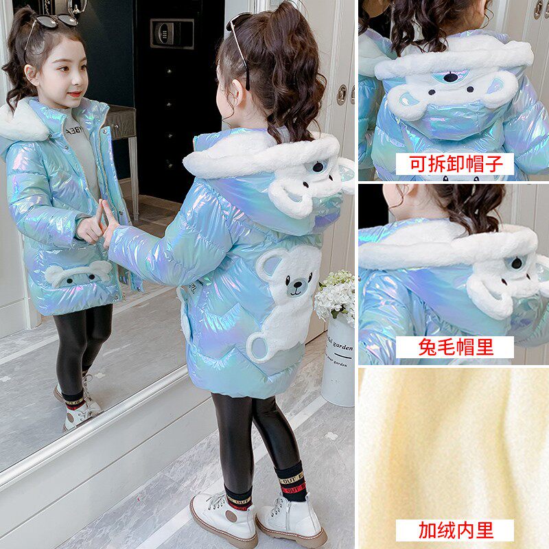 Girls' padded clothes 2022 winter new girls' colorful bright surface wash-free cotton clothes plus velvet thickened children's winter coats