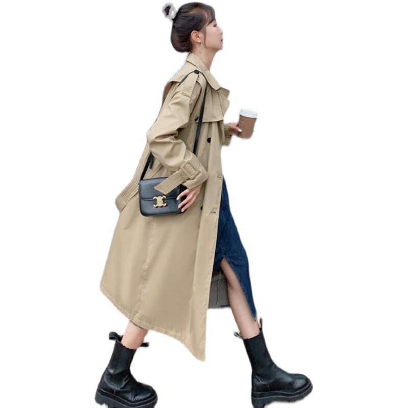 Korean version popular mid-length trench coat women's spring 2022 new fashion temperament double breasted spring and autumn coat