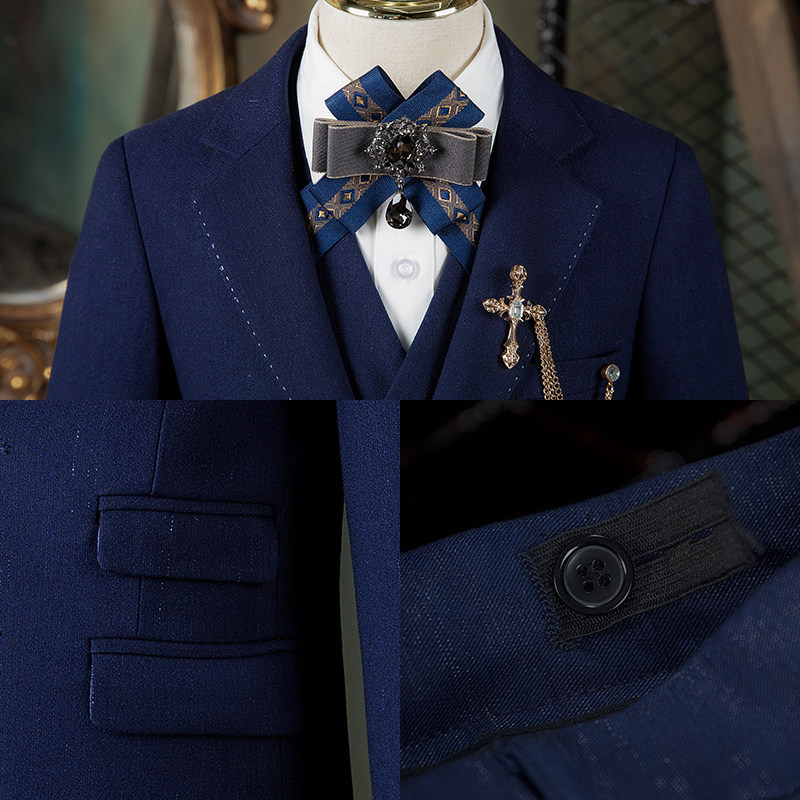 Three sets (suit pants waistcoat) five pieces (suit pants waistcoat shirt collar tie) Six pieces (suit pants waistcoat shirt collar knot chest needle) five pieces