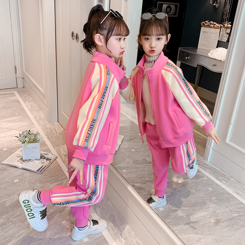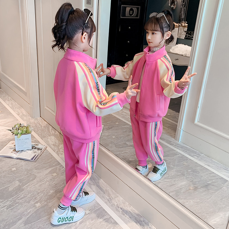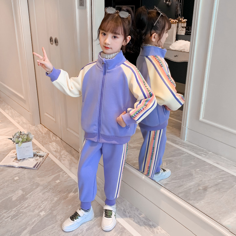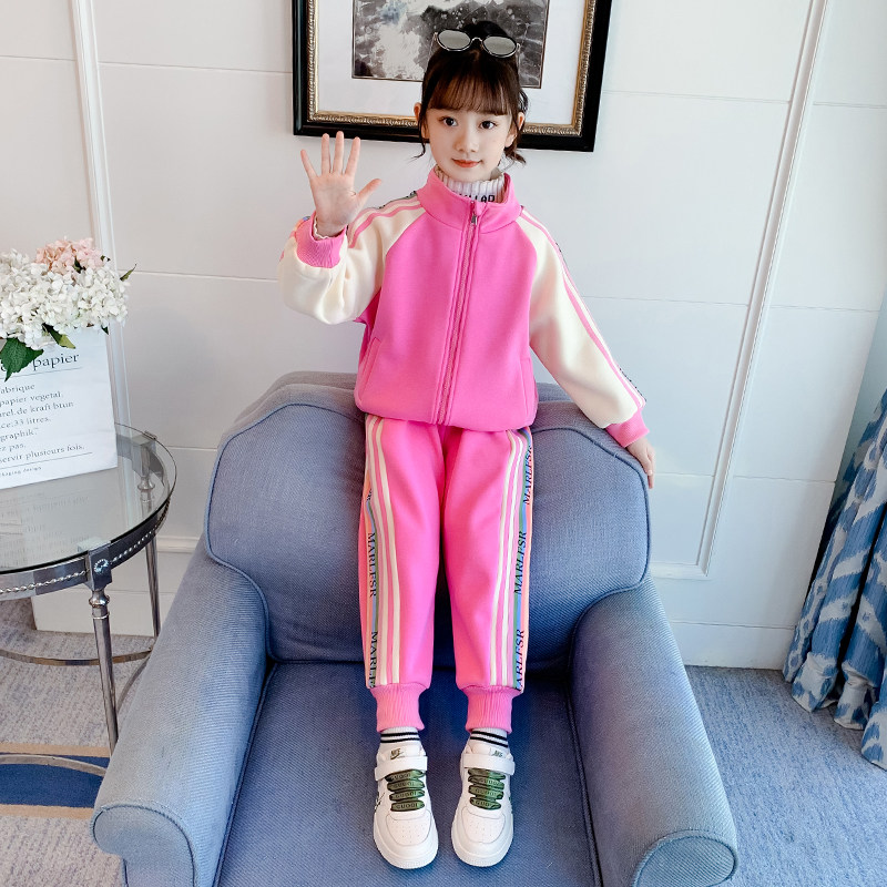 Girls' autumn and winter suits 2022 new western style fashionable children's suits in the big children's sports fried street two-piece suit plus velvet