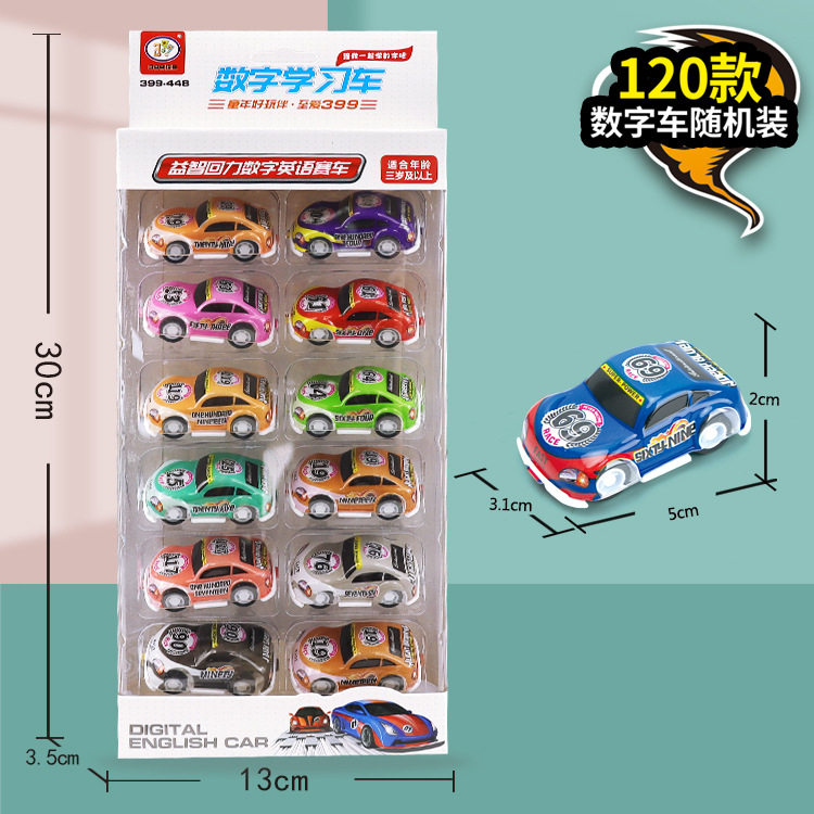 12 children's toy car digital learning pull back car gift set drop-resistant mini plastic racing model