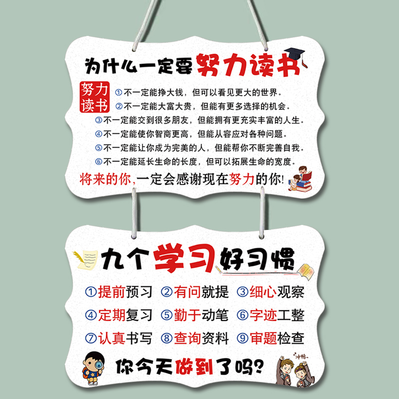 Creative children's inspirational learning slogan listing good children's home rules pendant primary and secondary school students good habits decoration house number